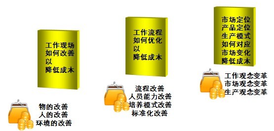 企业运营管理与精益生产是一个双胞胎,更是一个体系。实现他们既可以从最基层的工作现场来降低成本,也可以从中层的流程优化来降低成本,还可以从高层市场战略调整降低成本。