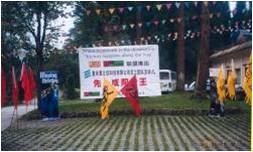要求我们全体队员要用我们的鼻子轻轻的触碰挂在高2.2米的树枝上小木鱼。