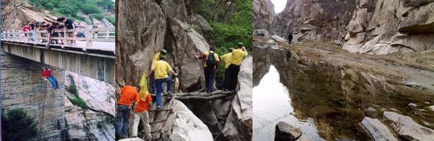 2、陡崖攀岩:数十米高的天然陡崖,等待着你去征服你克服艰难险阻,历经考验,攀上顶端,你一定会获得自信与信任,成就感和荣誉感。